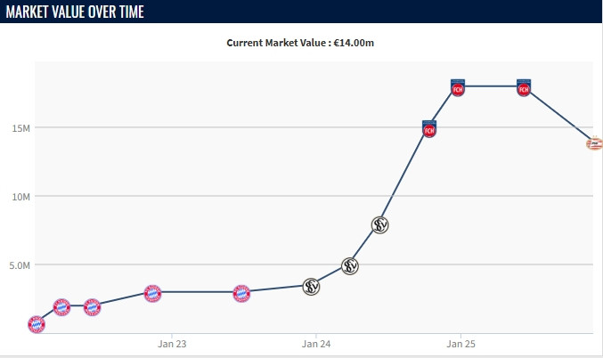 直播吧12月03日讯昨晚德转更新了荷甲球员的身价,今夏从拜仁转会至埃因霍温的19岁小将万纳尔身价下跌400万欧,现身价1400万欧。